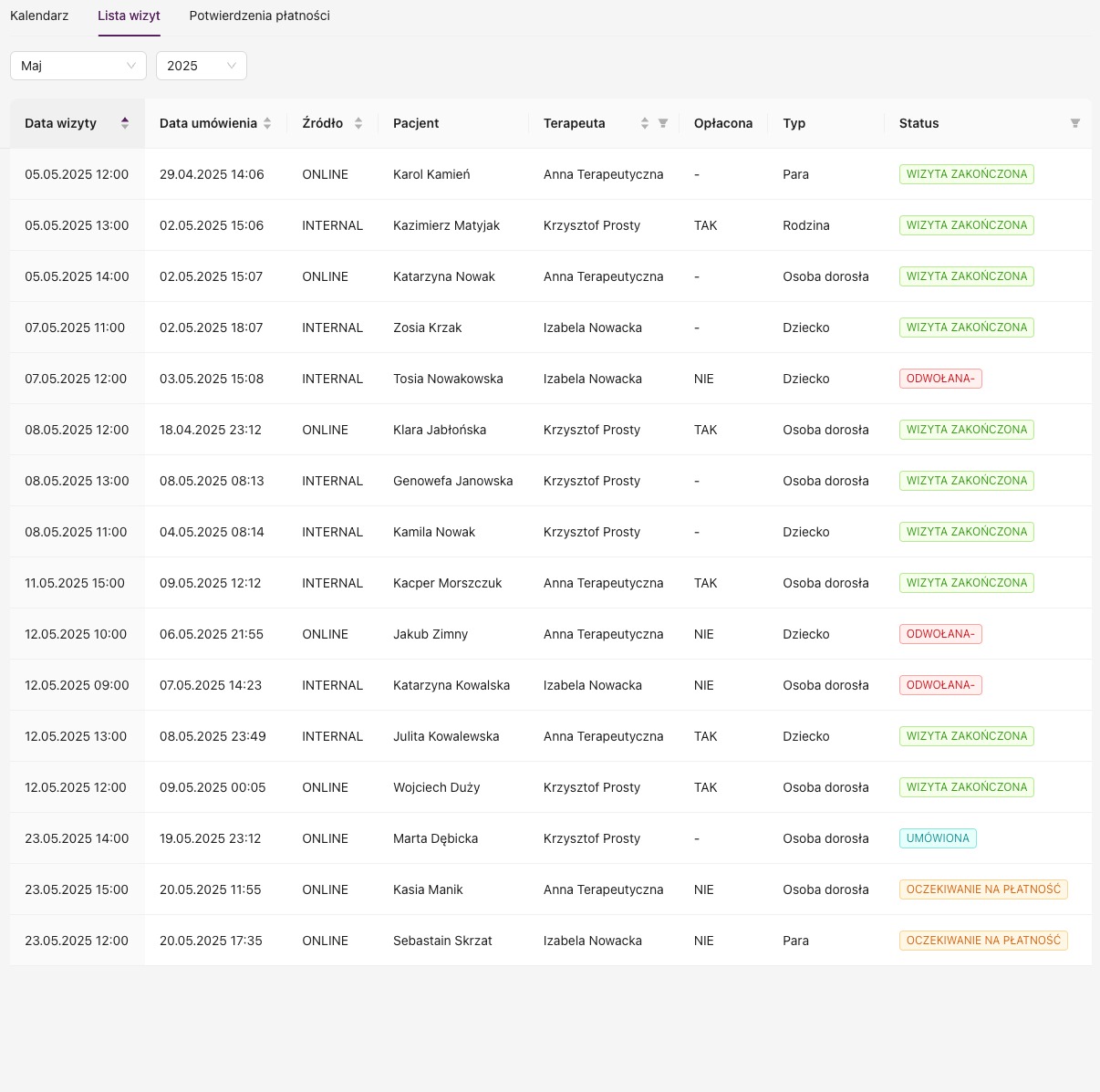 Pełna kontrola nad każdą lokalizacją, grafikami, wizytami i bazą pacjentów oraz specjalistów. Bez przełączania kont czy systemów.